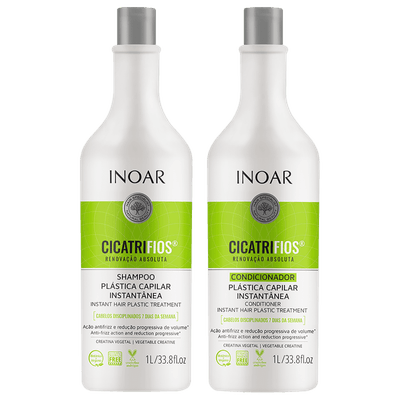 Com o Kit Inoar Cicatrifios, seus cabelos ganham vida nova: macios, reconstruídos e com brilho radiante!
